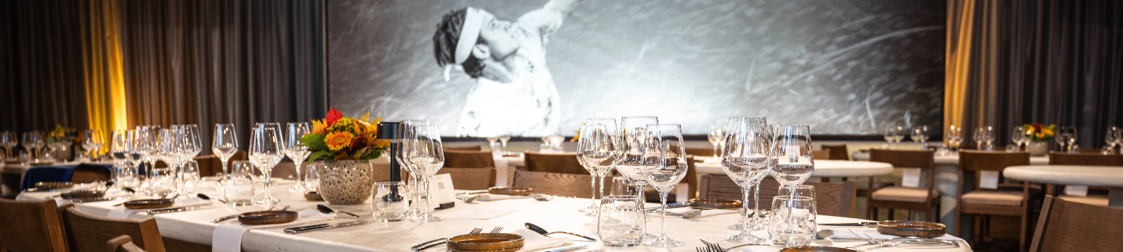 Welcome to the Courtside Lounge – a tranquil oasis designed for intimate networking and fine dining in an elegant setting.